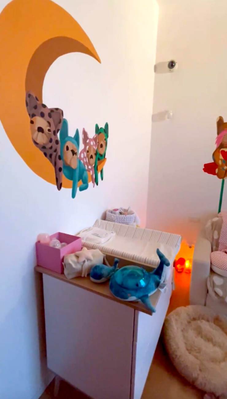 Anche la culla segue la falsariga cromatica delicata. Poi spuntano un fasciatoio, sempre molto utile negli attimi di bisogno, e dei pupazzi che hanno il compito di far ridere Matilde e magari di distrarla quando arriva il momento di cambiarla.